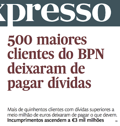 É mais uma cratera de 3 mil milhões de euros no BPN que é conhecida no mesmo dia que em se anuncia que o Governo prepara mais uma redução salarial na função pública e um dia depois da troika suspeitar que afinal os 4 mil milhões de euros da refundação são insuficientes.
