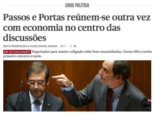 As políticas de austeridade-thatcheriana são uma tragédia, o falhanço em todos os indicadores económicos e financeiros não é culpa da meteorologia, a ideologia do estado mínimo é datada e um desastre no nosso ambiente, mas a coligação tem um bode expiatório: o ministro Álvaro Pereira que foi desde o início o alvo das fugas de informação que ridicularizavam o conselho de ministros e que pareciam uma especialidade do partido mais pequeno da coligação. E não aprendem. O título principal da primeira página do Público é elucidativo da escola não confiável desta gente: "CDS exige mais poder para segurar Governo".