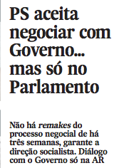 Ainda no Expresso, mas também no Público, pode observar-se o desenvolvimento do não-acordo entre os partidos governativos como se conclui das imagens seguintes.
