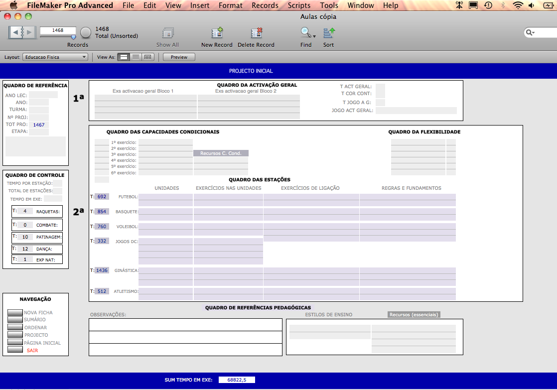 Apresentei, com se vê na imagem seguinte e de forma sucinta, uma base de dados (FileMaker) que comecei a construir em 1995 e que permite controlar o processo de ensino, também em tempo real, através daquilo que vulgarmente se designa por plano de aula.