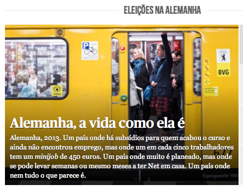 O Público online faz um retrato da Alemanha que destaca em primeira página. Alguns ficarão surpreendidos com a devastação que o ultraliberalismo provocou na Europa que desgraçadamente também fez escola nos socialistas e sociais-democratas. Os "germanófilos" apressados farão de conta que não leram.