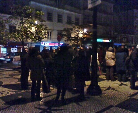 Momento em que o António Ferreira da APEDE agradecia a presença e reforçava os motivos da vigília. Ao seu lado direito está o Ricardo Silva, presidente da direcção do movimento, que falaria de seguida.