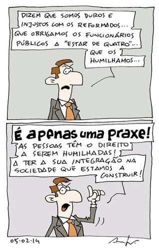 apenas uma praxe 09.02.14, Paulo Prudêncio Tags:anterobloguescartooncortes a eitodesenhoshumorpolíticapraxes publicado às 12:22 link comentar favorito Mais para ler