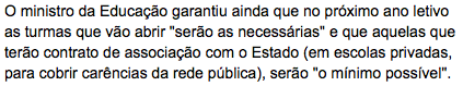 Há um detalhe, o público-privado na Educação, que entrou de vez na agenda mediática e que embaraça o actual ministro. Como se sabe, uma das primeiras medidas do exercício de Crato foi o aumento do valor por turma nas escolas cooperativas financiadas pelo Estado. Os jornalistas estão atentos e questionam o ministro sobre a abertura de turmas no próximo ano lectivo e sempre com o Oeste na mente. No caso que conheço melhor, as Caldas da Rainha, os colégios existentes sobrelotaram a oferta também no ensino secundário (algo que nem sequer estava previsto na escola pública que não foi construída para dar lugar a uma escola do Grupo GPS) e, no mínimo, espera-se que comecem por encerrar a abertura de turmas neste nível de ensino. Veremos qual é o "mínimo possível" a que se refere Nuno Crato.