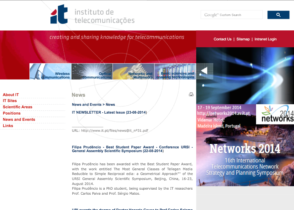 O prémio está anunciado na newsletter do Instituto de Telecomunicações do IST.