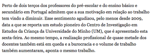 Há quase um década que o plano inclinado da profissionalidade dos professores é uma evidência. À desconfiança traduzida num inferno de burocracia acrescentaram-se cortes a eito que provocaram o aumento de alunos por turma, o aumento dos horários dos professores e os cortes curriculares que deixaram milhares de professores sem serviço lectivo. Não é de estranhar que qualquer estudo aponte para uma espécie de quadro negro. Dá ideia que os últimos governos têm apenas um único objectivo: provocar uma onda imparável de "fugas com penalização".
